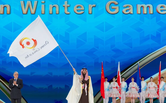 إيذانًا باستضافتها لدورة الألعاب الآسيوية الشتوية العاشرة (نيوم 2029)، كأول دولة غرب قارة آسيا تستضيف المحفل الرياضي القاري.