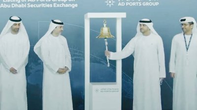 ويأتي إدراج أسهم «مجموعة موانئ أبوظبي» في «سوق أبوظبي للأوراق المالية» وفعالية قرع الجرس، في أعقاب نقل «القابضة» (ADQ) مؤخراً، ملكية أسهم شركتين رائدتين مدرجتين إلى «مجموعة موانئ أبوظبي»، شملت 22.32% من أسهم شركة «أرامكس»، و10% من شركة «الجرافات البحرية الوطنية».