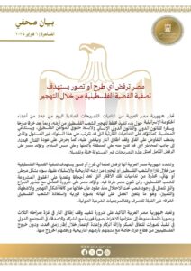 “مصر” ترفض أي طرح أو تصور يستهدف تصفية القضية الفلسطينية من خلال التهجير