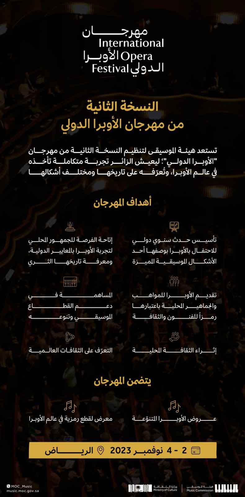 هيئة الموسيقى السعودية تنظّم النسخة الثانية من مهرجان الأوبرا الدولي.. مطلع نوفمبر المقبل
