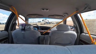 ونشر اليوتيوبر صاحب قناة TechRax مقطع فيديو فيه فريقه يتحكم عن بعد بسيارة دون سائق تحتوي على جهاز آيفون 14 برو ملفوف بلاصق على مسند الرأس الخاص بمقعد السائق، ويحاول الفريق أن يجعل السيارة تصطدم بمركبة قديمة ومعطلة.