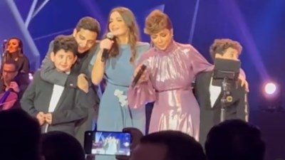 أصالة تغني مع أبنائها الأربعة على المسرح وتثير اعجاب النجوم والجماهير