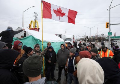 ويغلق هؤلاء خصوصاً جسر إمباسادور الذي يشكّل محوراً تجارياً حيوياً يربط أونتاريو بمدينة ديترويت الأميركية، إذ يعبره أكثر من 25% من السلع المصدرة بين الولايات المتحدة وكندا.