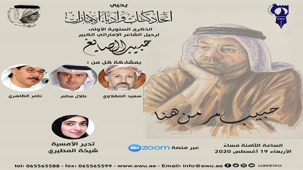 نظم اتحاد كتاب وأدباء الإمارات أمسية تحت عنوان “حبيب مر من هنا” إحياءً للذكرى السنوية الأولى لرحيل الشاعر والكاتب الصحفي “حبيب الصايغ” وفاءً وتقديرًا له، وذلك عبر منصة زووم.
