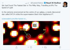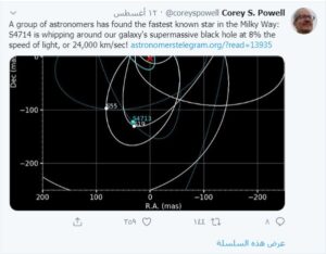 ووفقا لـ The Astronomer’s Telegram، يدور أحد النجوم المكتشفة حديثا، والمسمى S4711 ، حول الثقب الأسود لمجرة درب التبانة مرة كل 7.6 سنوات، مؤكدا الرقم القياسي لأقصر فترة مدارية.