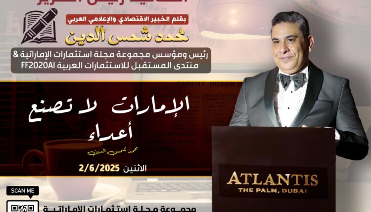 بقلم / محمد شمس الدين رئيس تحرير وناشر مجلة استثمارات الإماراتية مؤسس منتدى المستقبل للاستثمارات العربية " FF2020AI "