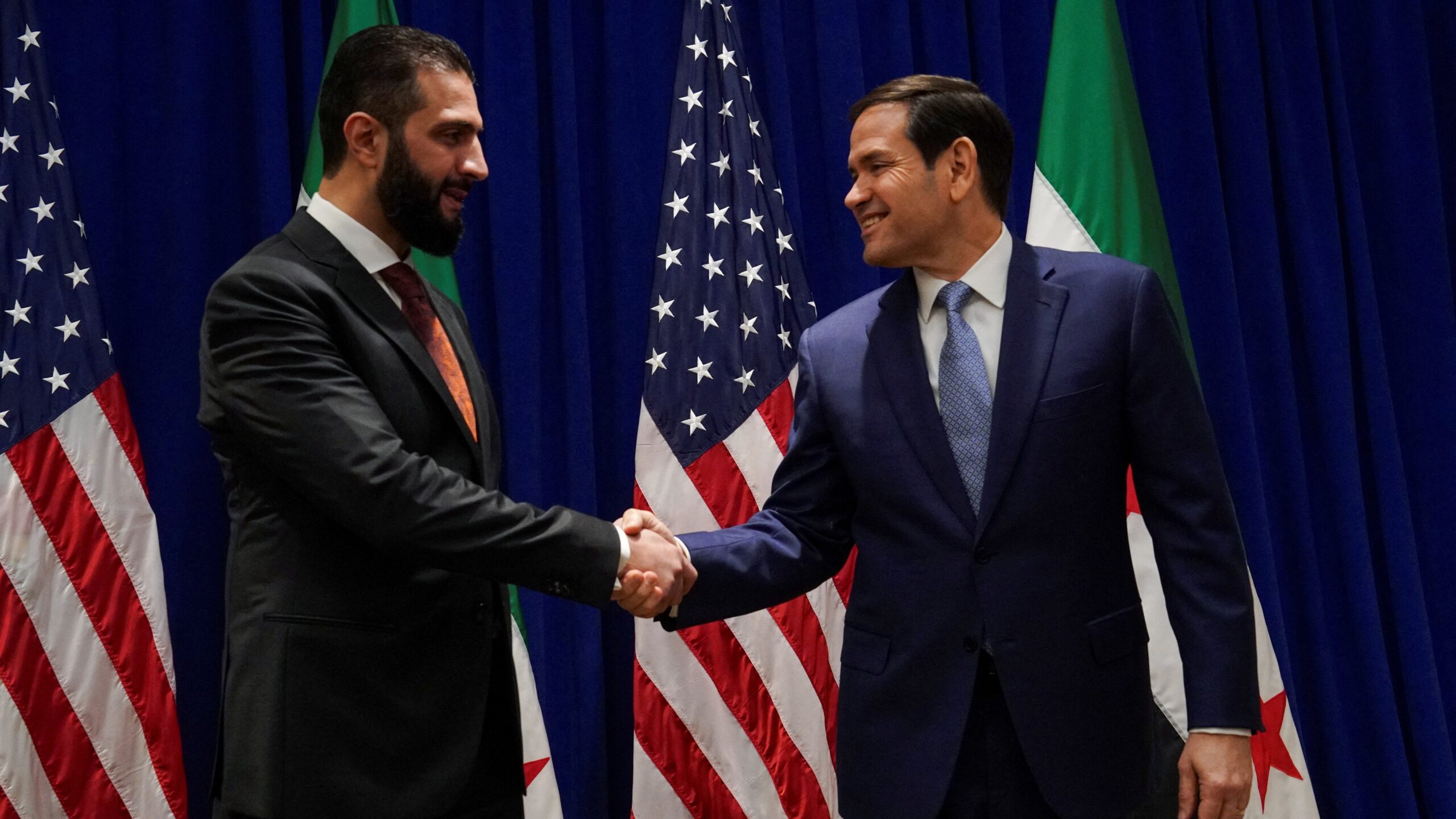 التقى الرئيس السوري أحمد الشرع في نيويورك اليوم ماركو روبيو وزير خارجية الولايات المتحدة الأمريكية.