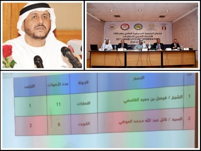 حسمت «التزكية» مقعدي نائب الرئيس، لكل من الدكتور محمد وجيه عزام رئيس الاتحاد المصري، وعبدالله الوثلان رئيس الاتحاد السعودي، فيما فاز بالعضوية 6 شخصيات من أصل 10 مرشحين، وهم نور الدين التريكي رئيس الاتحاد الليبي، وخالد كوكش رئيس الاتحاد السوري، وفوزي لوصيف الأمين العام للاتحاد الجزائري، وسيف الرشيدي رئيس الاتحاد العُماني، ومحمد كاتم نائب رئيس الجامعة المغربية، ونوفل المرشاوي رئيس الجامعة التونسية، بالإضافة إلى مقعد الاتحاد الفلسطيني الذي يشغله محمد سعيد تمراز نائب رئيس الاتحاد.