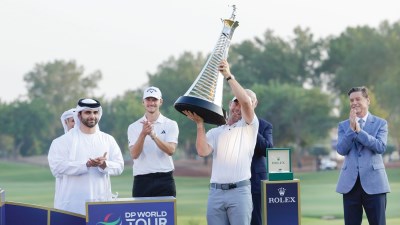 تّوج سمو الشيخ منصور بن محمد بن راشد آل مكتوم، رئيس مجلس دبي الرياضي، الدنماركي نيكولاي هوجارد بلقب النسخة الخامسة عشرة لبطولة جولة دي بي ورلد، الختامية لموسم «السباق إلى دبي»، و«سلسلة رولكس» لبطولات النخبة، والتي أقيمت تحت رعاية سموه، في نادي عقارات جميرا للجولف في دبي، واختتمت عصر أمس، بمشاركة أفضل 50 لاعباً في ترتيب «السباق إلى دبي» لجولة دي بي ورلد، بجوائز 10 ملايين دولار.