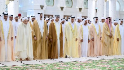الشيوخ يؤدون صلاة عيد الفطر المبارك في جامع الشيخ زايد