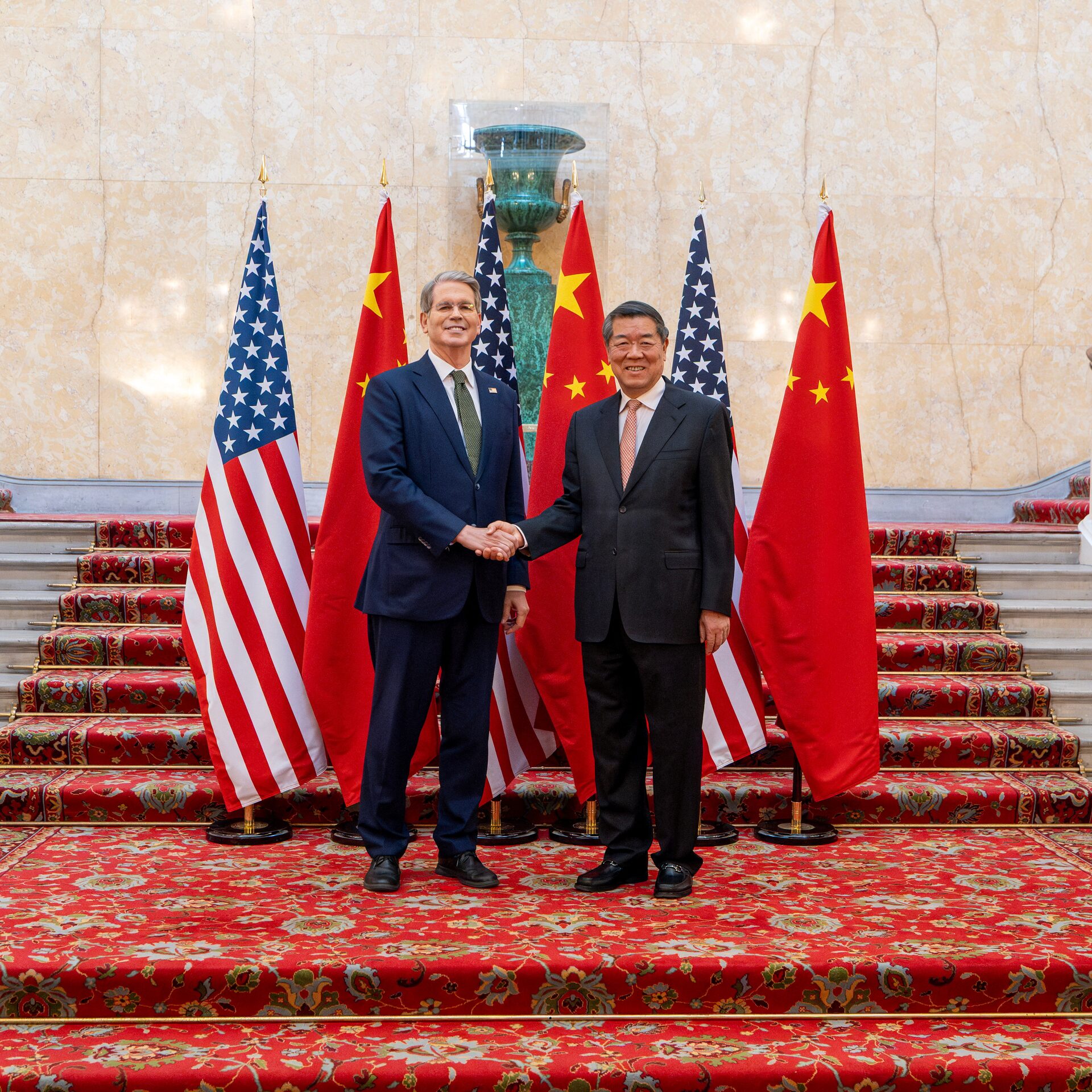 بحث نائب رئيس الوزراء الصيني خه لي فنغ، في اتصال هاتفي اليوم، مع وزير الخزانة الأمريكي سكوت بيسنت والممثل التجاري الأمريكي جاميسون جرير، قضايا التجارة الثنائية والجهود الجارية لتنفيذ اتفاق خفض التصعيد في الحرب التجارية بين البلدين.