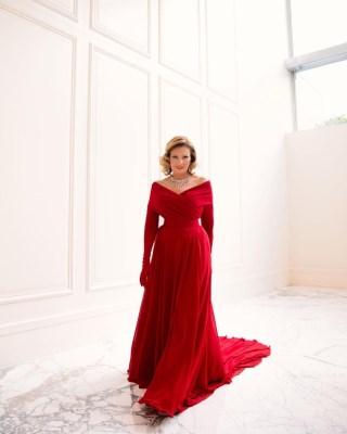 تمّ تنسيق هذا الثوب مع مجوهرات ماسيّة من Yessayan تألفت من عقد بارز انسدلت منه دمعات من الماس، تناسق مع أقراط طويلة للأذنين، وسوار عريض ارتدته في اليد نفسها التي ارتدت فيهات خاتماً متناسقاً مع العقد.