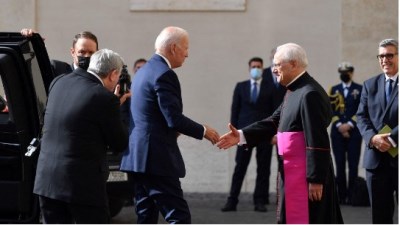 إلا أن بايدن ثاني رئيس كاثوليكي للولايات المتحدة بعد جون فيتزجيرالد كينيدي، سيبدأ رحلته بلقاء ودي مع البابا فرنسيس ظهرا بالتوقيت المحلي (10,00 ت غ) في الفاتيكان، سيكون الرابع في في حياته، لكنه الأول كرئيس.