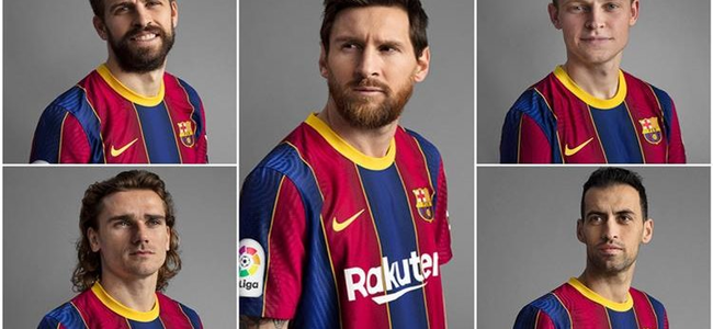 ويظهر قميص برشلونة من خلال خطوط طولية باللونين المميزين للنادي الأحمر والأزرق، مع وجود الراعي الرسمي للفريق شركة “راكوتن” اليابانية.