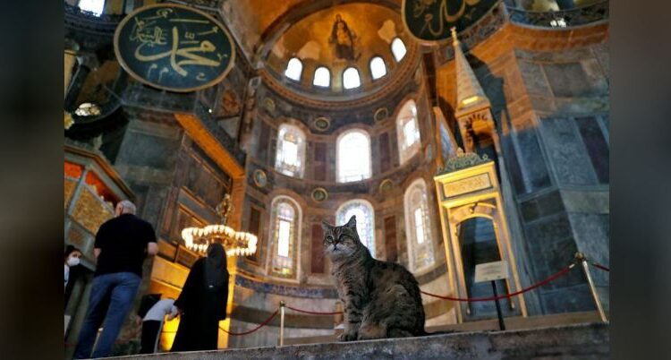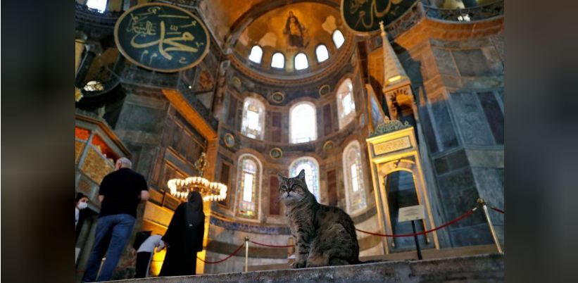 تركيا تسمح للقطة جلي بالبقاء في آيا صوفيا بإسطنبول رغم تحويلها لمسجد
