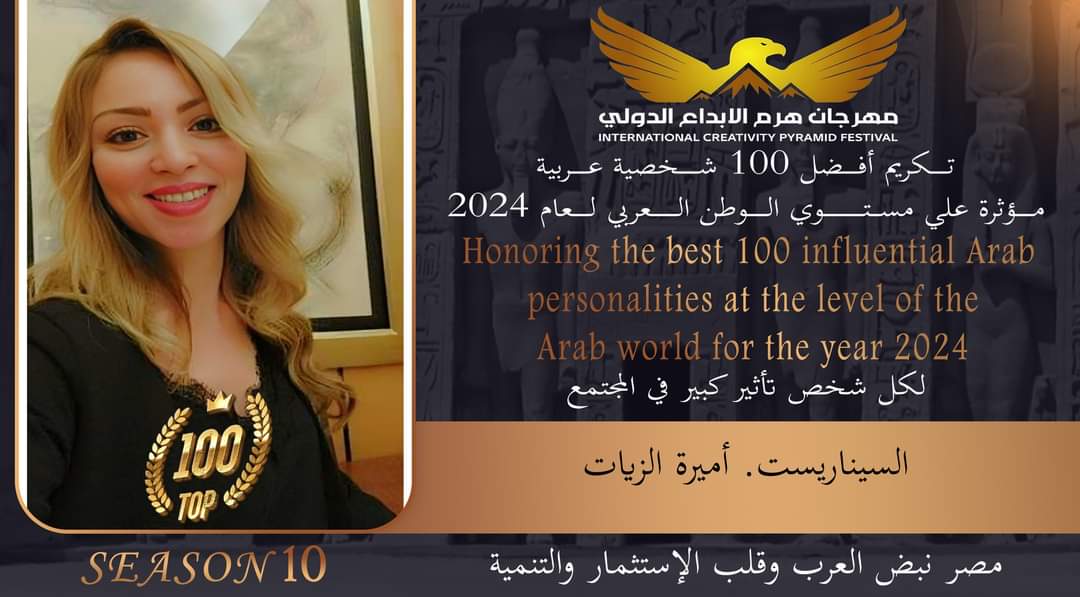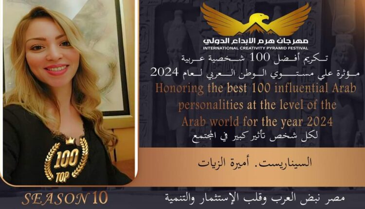 تكريم السيناريست أميرة الزيات في الدورة العاشرة لــ “مهرجان هرم الابداع الدولي “
