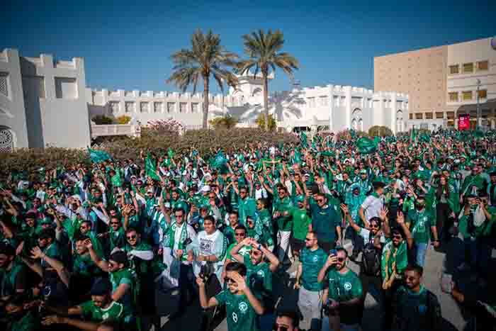 نظمت جماهير ومشجعو المنتخب السعودي أمس مسيرتهم الثانية في بطولة كأس العالم 2022، المقامة في دولة قطر، بمبادرة من مجلس جمهور المنتخب السعودي، وذلك قبل مباراة الصقور الخضر مع منتخب بولندا.