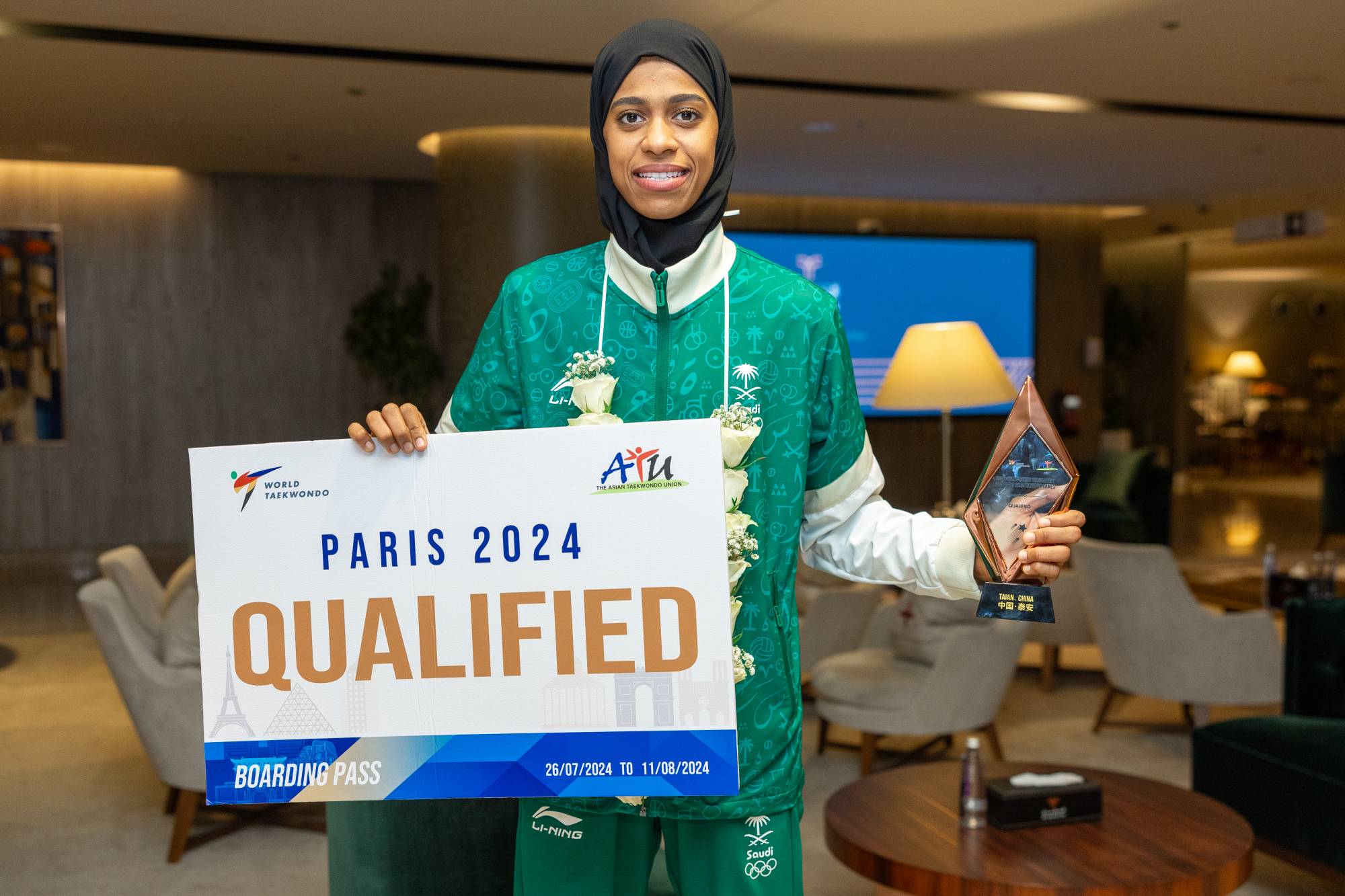 الجدير بالذكر أن لاعبة المنتخب السعودي للتايكوندو دنيا أبو طالب هي أول رياضية سعودية تتأهل لأولمبياد باريس 2024.