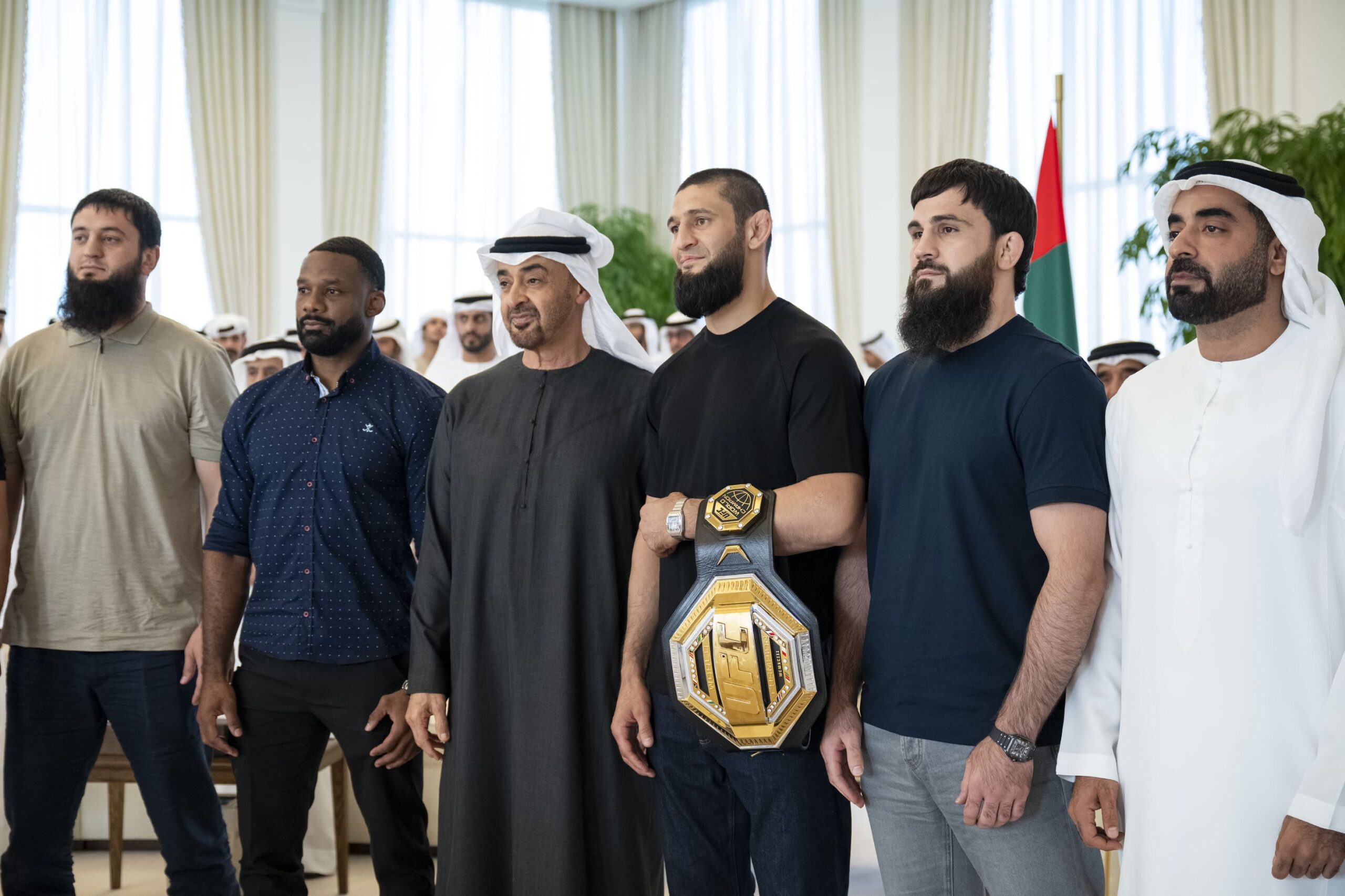 استقبل الشيخ محمد بن زايد آل نهيان رئيس الدولة “حفظه الله” حمزة شيماييف الفائز ببطولة العالم للوزن المتوسط “يو اف سي” التي أُقيمت مؤخراً في مدينة شيكاغو الأميركية.