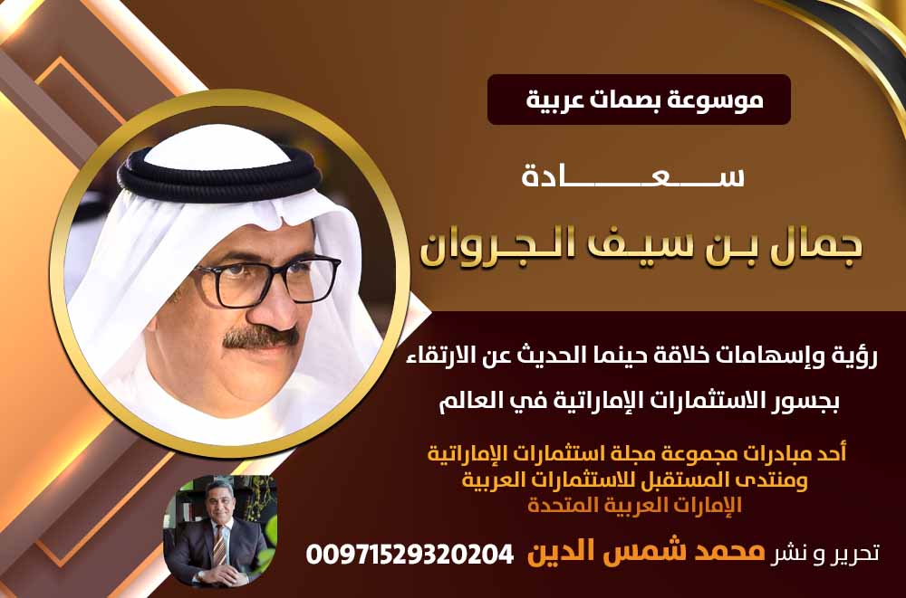 في هدوء وحركة لا تكل، نرى خطواتٍ متسارعةٍ تتجُه نحو الإنجٌاز. تبدو الابتسامات متقاطعة في هذا الصمت، ويظهر على وجه الإماراتي الأصيل الخبرات والمسارات التي اكتسبها خلال الأعوام ومسيرة عمل مستمرة. هُناك شواهد كثيرةً على المُنجزات المتعددة للمقرونة؛ أنهم أبناء الإمارات الذين يسعون لتحقيق رؤية قيادة دولتهم الحكيمة، بتحقيق الريادة وتبوؤ الإمارات مكانة متقدمة في مؤشرات التنمية الشاملة في مختلف المجالات، ومواكبة اقتصاد المعرفة، وما تؤكده المؤشرات الدولية من حضور إيجابي وقوي للاستثمارات الإماراتية في الساحات الإقليمية والدولية، ويستمر أبناء الإمارت في التمهيد والاحتفاظ بموقعهم الرائد في العالم، ويعملون بلا كلل لتحقيق النجاح التنموي والحضاري بين الأمم. نرى فيهم رمزاً للعزم والتفاني، ونشعر بالفخر لأنهم جزءٌ لا يتجزأ من “موسوعة بصمات عربية”، فضيفنا سعادة جمال بن سيف الجروان، أحد قادة الأعمال في الإمارات في مجال الاتصالات، وسفير صفقات الاندماج والاستحواذ والاستثمارات الدولية والتجارة وتطوير الأعمال، من الجيل الجدير بخدمة وتطوير وطنهم، وبناء جسور الاستثمارات الإماراتية في الخارج التي تنتشدها الدول النامية والمتقدمة على حدٍ سواء.