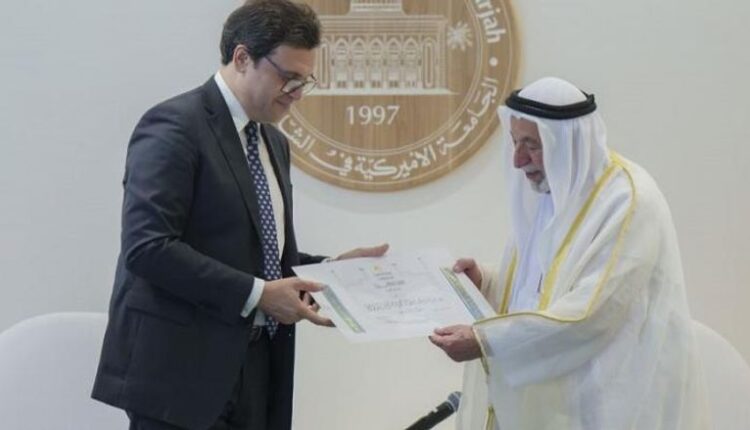 تسلم صاحب السمو الشيخ الدكتور سلطان بن محمد القاسمي عضو المجلس الأعلى حاكم الشارقة، صباح اليوم الخميس، وبحضور الشيخة بدور بنت سلطان القاسمي رئيسة الجامعة الأميركية في الشارقة، جائزة النيل للمبدعين العرب للعام 2024 من معالي أحمد فؤاد حنّو وزير الثقافة في جمهورية مصر العربية.