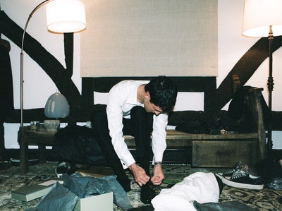 كما حصل خطيبها “دالتون” على نصيبه من الصور وهو يتحضّر للزفاف إذ ظهر وهو يرتدي بذلته السوداء بينما كان يحاول انتعال حذائه، وحتى الكلب الخاص بهما فقد ظهر في لقطات الصورة.