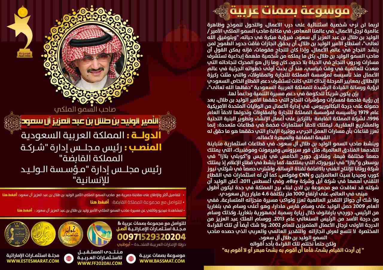 • لتفاصيل أكثر والإطلاع على مقابلة حصرية مع صاحب السمو الملكي الأمير الوليد بن طلال بن عبد العزيز آل سعود:  أضغط هنا