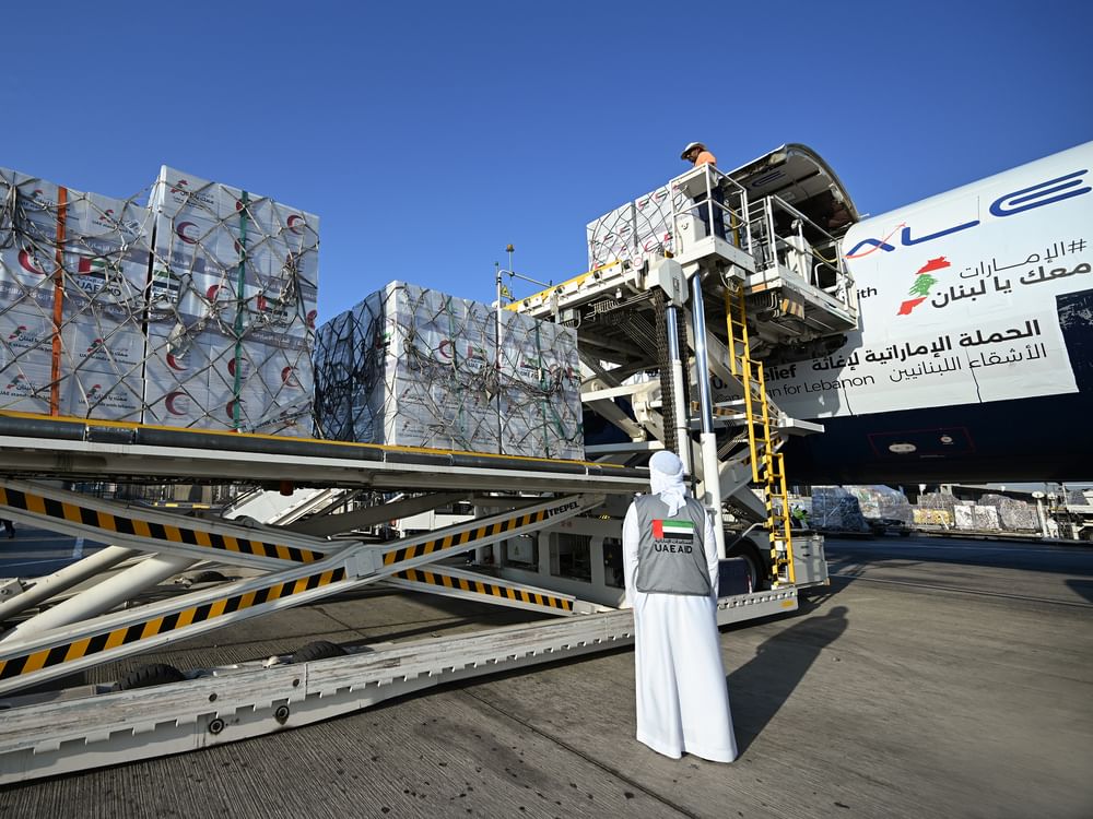 وتأتي هذه الإمدادات ضمن الجهود المستمرة التي تقوم بها دولة الإمارات في تقديم الدعم الإغاثي الإنساني العاجل للشعب اللبناني الشقيق، ترجمةً لتوجيهات صاحب السمو الشيخ محمد بن زايد آل نهيان رئيس الدولة “حفظه الله”، ومتابعة سمو الشيخ منصور بن زايد آل نهيان نائب رئيس الدولة نائب رئيس مجلس الوزراء رئيس ديوان الرئاسة، وإشراف سمو الشيخ ذياب بن محمد بن زايد آل نهيان نائب رئيس ديوان الرئاسة للشؤون التنموية وأسر الشهداء رئيس مجلس الشؤون الإنسانية الدولية.