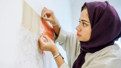 وعملت الفنانة عفراء السويدي على إعادة تشكيل الذكريات البصرية المشتتة بهدف تجسيد التجارب الصادمة بطريقة التصميمات المعمارية المحلية.
