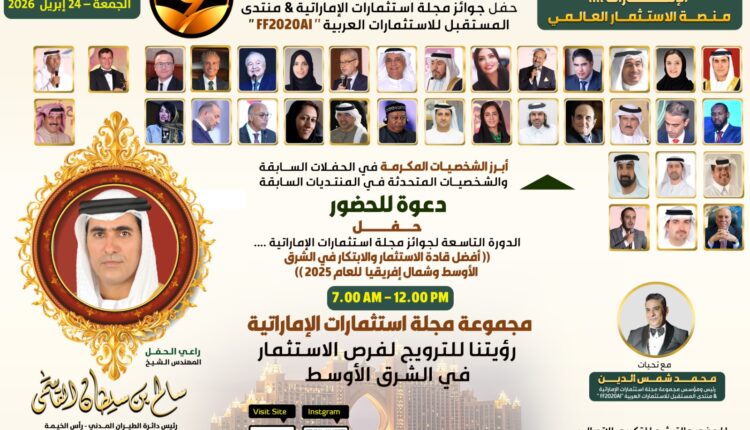 لإطلاق حفلها السنوي يوم 11 ديسمبر 2026، في حدث يُتوقع أن يترك بصمة بارزة على المشهد الاستثماري في دول المنطقة. وذلك بعنوان (( أفضل قادة الاستثمار والابتكار في الشرق الأوسط وشمال إفريقيا للعام 2026)) وتحت شعار (( الإمارات منصة الاستثمار العالمي )).