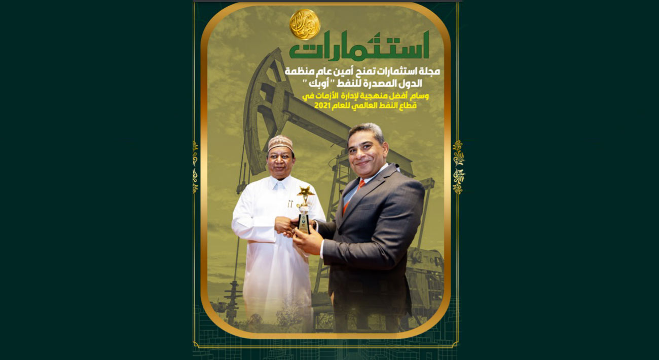 مجلة استثمارات الإماراتية تمنح أمين عام منظمة الدول النفطية المصدرة للنفط “أوبك” جائزة “أفضل إدارة لأزمات القطاع النفطي العالمي للعام 2021”