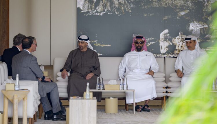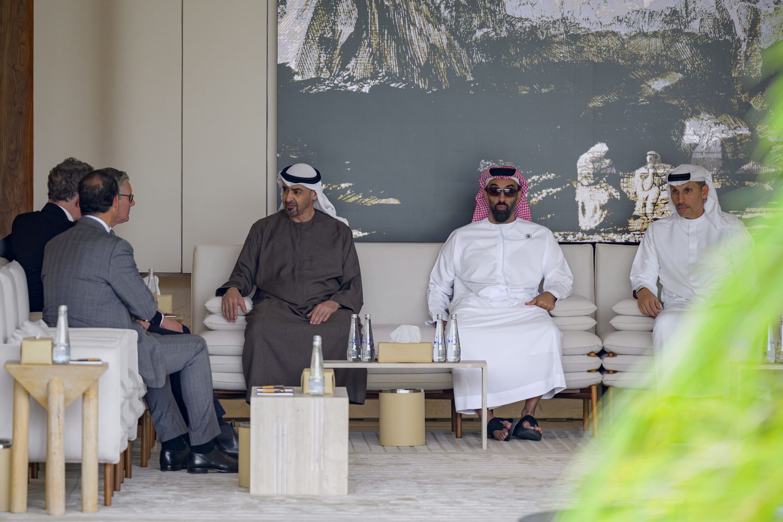 استقبل محمد بن زايد آل نهيان، رئيس الدولة، اليوم، كير ستارمر، الذي يقوم بزيارة رسمية إلى الإمارات العربية المتحدة.