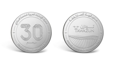 أصدر مصرف الإمارات العربية المتحدة المركزي، بالتعاون مع مجلس التوازن الاقتصادي، 1000 مسكوكة تذكارية من الفضة، بمناسبة الذكرى الثلاثين لتأسيس المجلس.