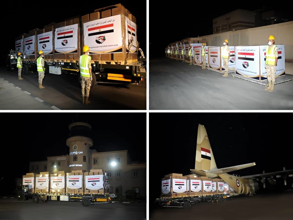 فى إطار تضامن مصر مع الأشقاء الأفارقة وبتوجيهـات مـن الرئيس عبد الفتاح السيسى رئيـس الجمهوريـة القائد الأعلى للقوات المسلحة، بتقديم المعاونة للأشقاء فى جمهورية السودان، أقلعت طائرتا نقل عسكريتين على متنهما كميات كبيرة من المواد الغذائية وألبان الأطفال، مقدمة من جمهورية مصر العربية لجمهورية السودان الشقيقة.