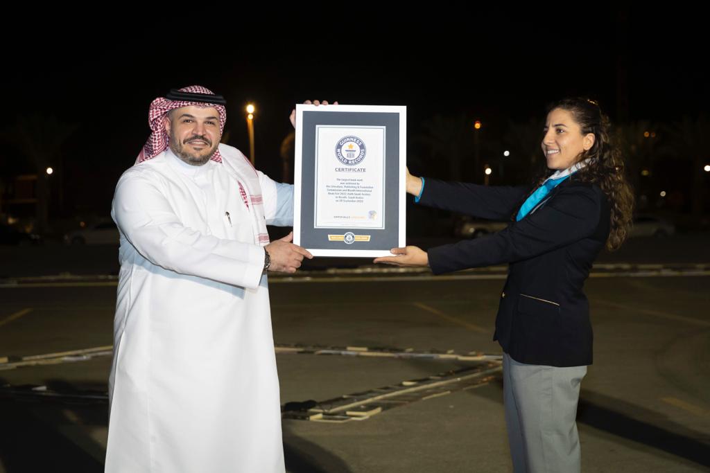 وقد تسلّمت هيئة الأدب والنشر والترجمة شهادتي التسجيل بحضور المحكم الرسمي لجينيس للأرقام القياسية، وجمعٌ من الشخصيات الثقافية والأدبية.