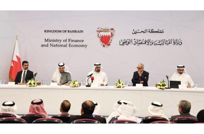 جاء ذلك خلال المؤتمر الصحفي الذي عقده وزير المالية والاقتصاد الوطني الشيخ سلمان بن خليفة آل خليفة لتسليط الضوء على آخر مستجدات الوضع الاقتصادي في مملكة البحرين، بمشاركة وزير العمل جميل حميدان، ومحافظ مصرف البحرين المركزي رشيد المعراج، ووزير شؤون البلديات والزراعة وائل المبارك، ووزير الصناعة والتجارة عبدالله فخرو، وبحضور سمير ناس رئيس غرفة تجارة وصناعة البحرين وعدد من أعضاء مجلس إدارة الغرفة.