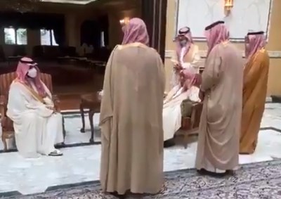 وأظهر مقطع الفيديو إصرار ولي العهد على الجلوس بجوار الشيخ ناصر الشثري، تاركاً الكرسي المخصص لسموه، مردداً عبارة “أنا واحد من عياله”.