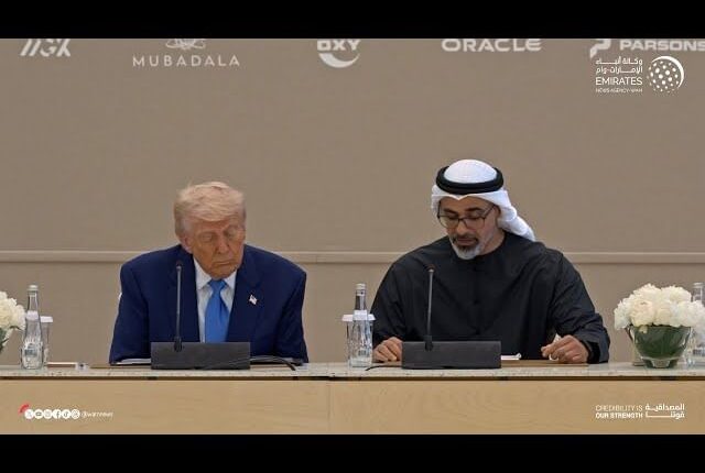 شهد الشيخ خالد بن محمد بن زايد آل نهيان، ولي عهد أبوظبي، و الرئيس الأمريكي دونالد ترامب، اليوم في قصر الوطن، حوار الأعمال الإماراتي الأمريكي.