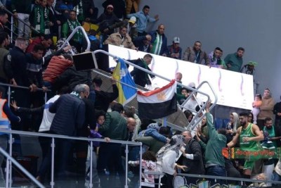 تسبب انهيار جزء من مدرج بصالة الدكتور حسن مصطفى بضاحية 6 اكتوبر جنوب القاهرة إصابة 27 مشجعا لنادي الاتحاد السكندري خلال مباراة فريقها ضد الاهلي في الكأس السوبر المصرية في كرة السلة.
